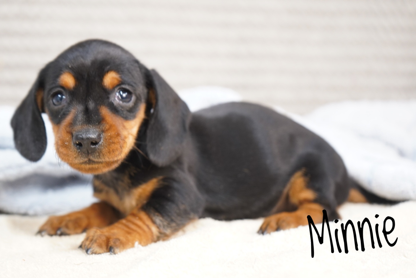 Say hello to sweet Minnie our cuddly Dachshund puppy! She is loved on by our whole family, including young children. She comes with a 30