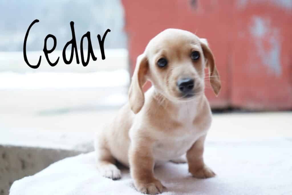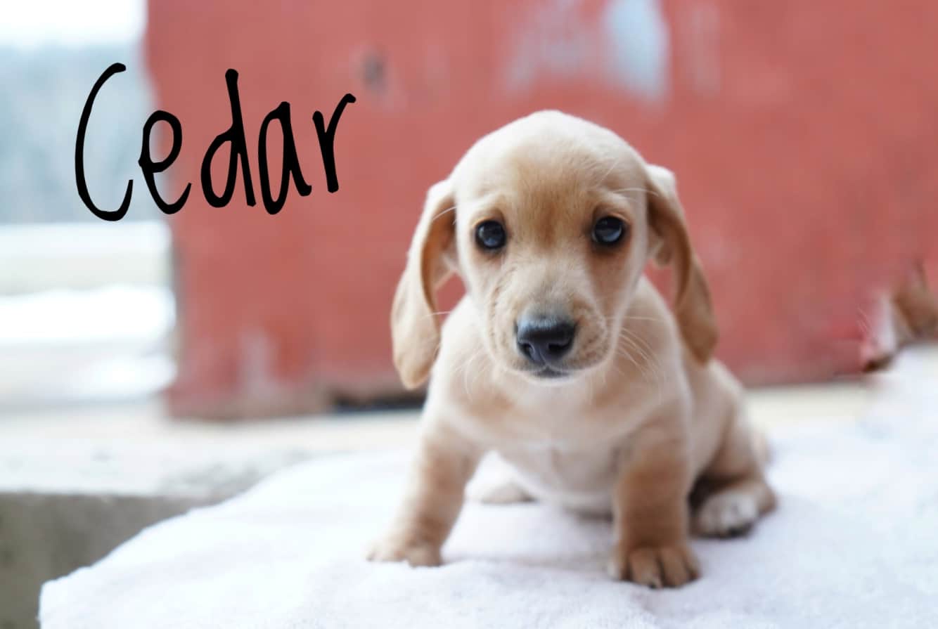 Say hello to sweet Cedar, our short haired cream Dachshund boy puppy! He is loved on by our whole family, including young children. He comes with a 30 day health guarantee and will be checked by our vet to ensure that he’s ready for his forever home. Contact Bethany today to discuss making him yours forever!
